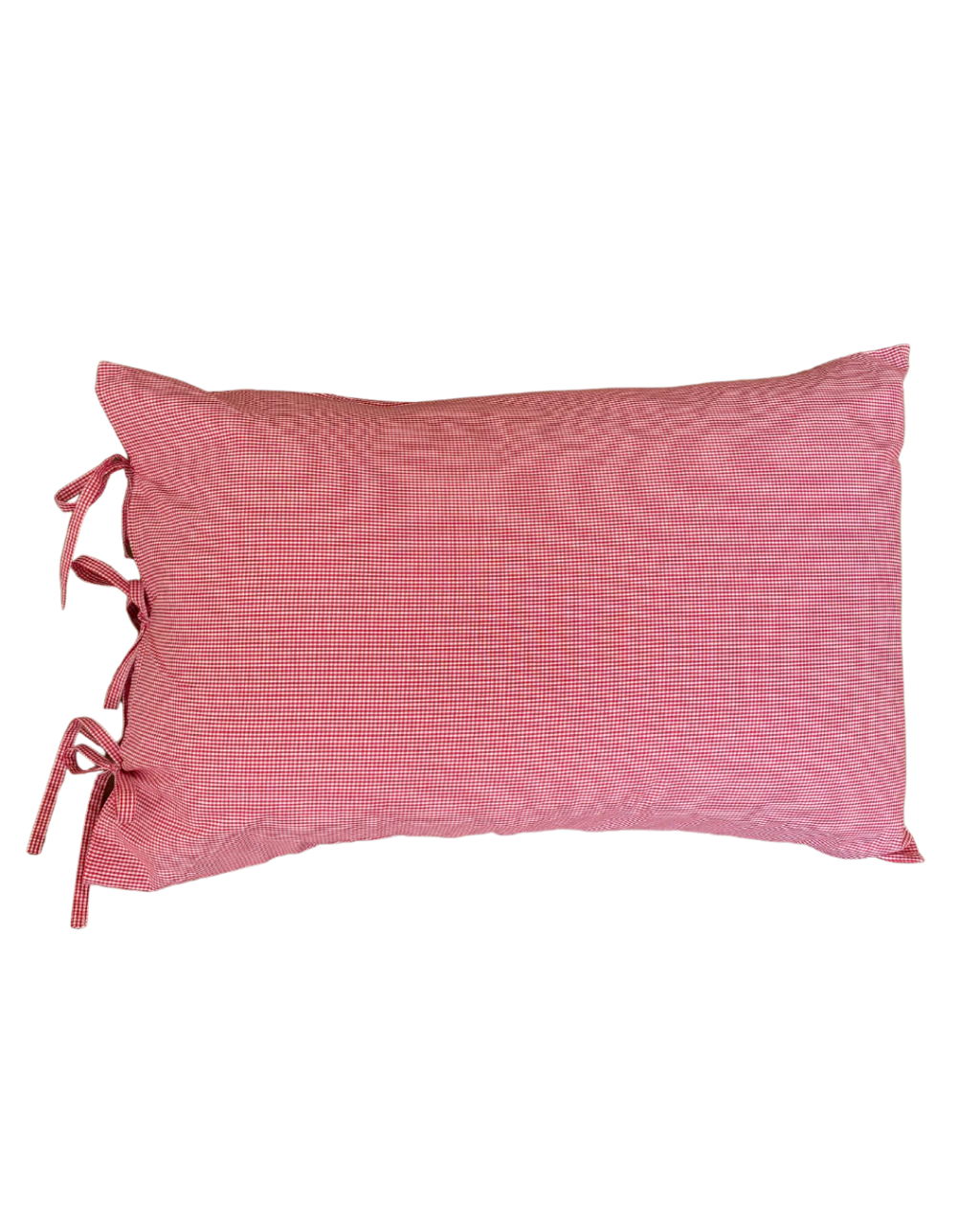 A Fronha Laços Vichy Vermelho é feita em tecido 100% algodão de fio tinto de alta qualidade e maciez. Possui três laços para amarração na lateral, o que traz para a peça uma inspiração que vem das casas de campo do interior da Europa.